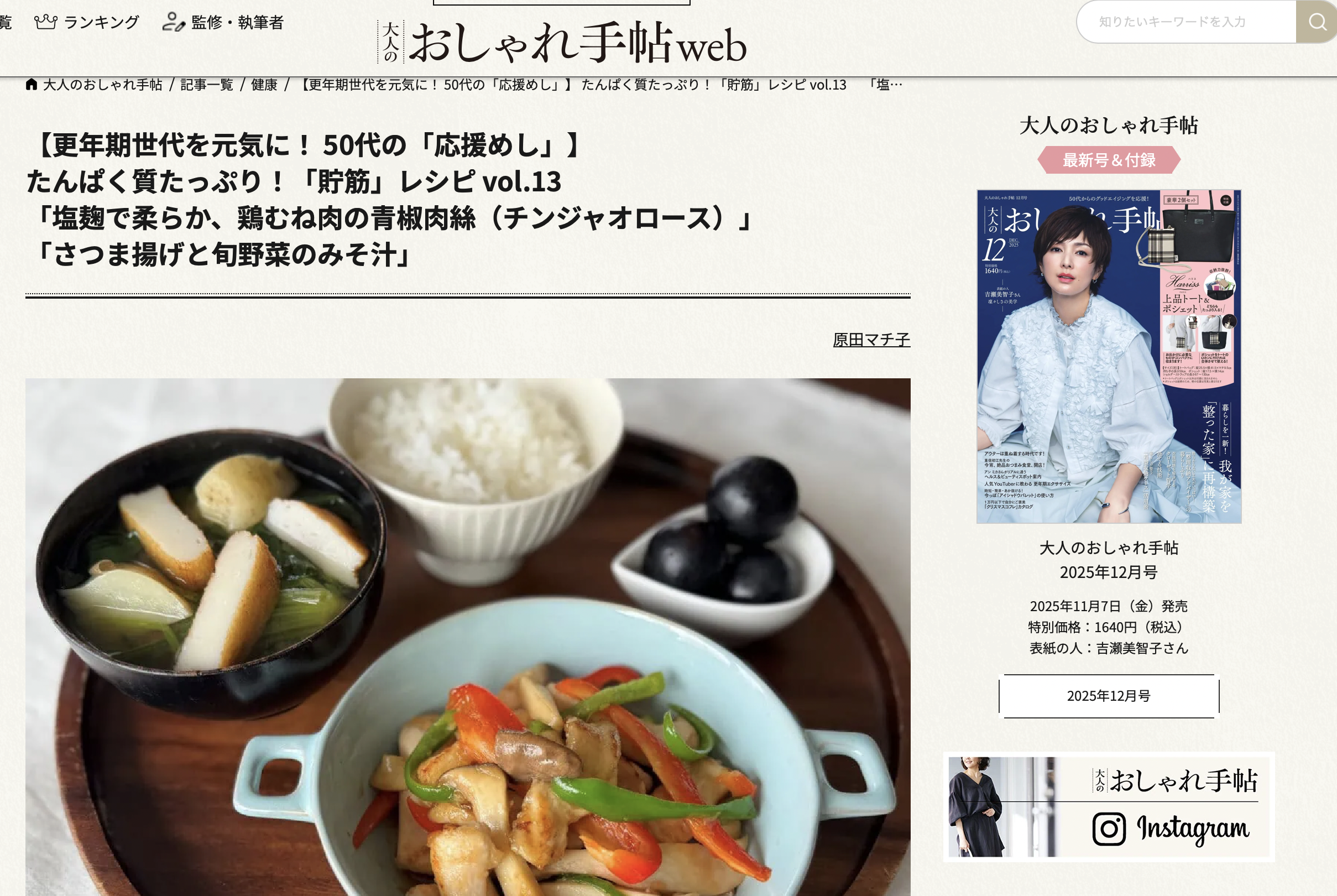 大人のおしゃれ手帖web たんぱく質たっぷり!「貯筋」レシピ vol.13